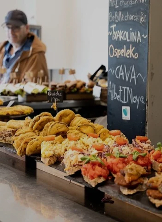 En 3 horas degustarás una variedad de 5 pintxos diferentes: desde los tradicionales, como la Gilda o la tartaleta de txangurro (pastel de cangrejo), hasta nuevas creaciones de la cocina moderna.