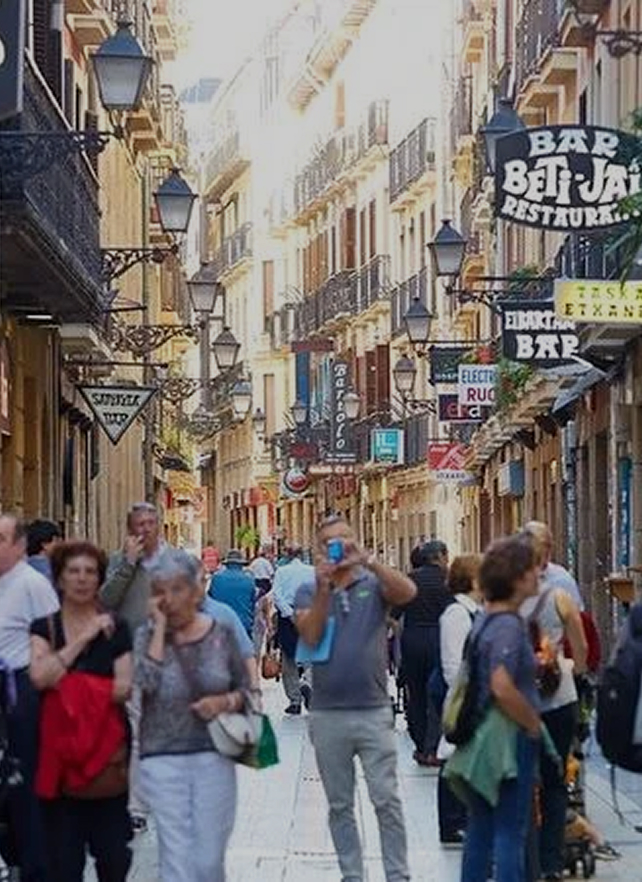 Disfrutaremos en locales degustando pintxos como lo hago con mi familia y amigos. Un punto de encuentro para amantes de la gastronomía. Cada año, expertos culinarios, chefs de todo tipo, foodies y apasionados de la alta cocina peregrinan a San Sebastián para disfrutar de menús de algunos de los más grandes e importantes cocineros en la historia de la gastronomía europea; para deleitarse con una comida de pintxos en los innumerables bares repartidos por todos los barrios; para aprovechar la alta concentración de restaurantes con estrellas Michelin